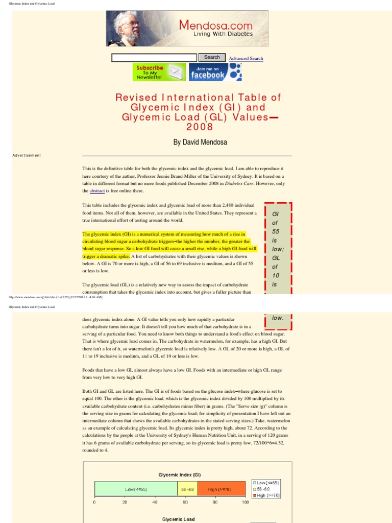 - Special Article International Table Of Glycemic Index And Glycemic Load Values 20021 2 Kaye Foster Powell Susanna Ha Holt And Janette C Brand Miller Ppt Download Sick Tamburo Youtube,