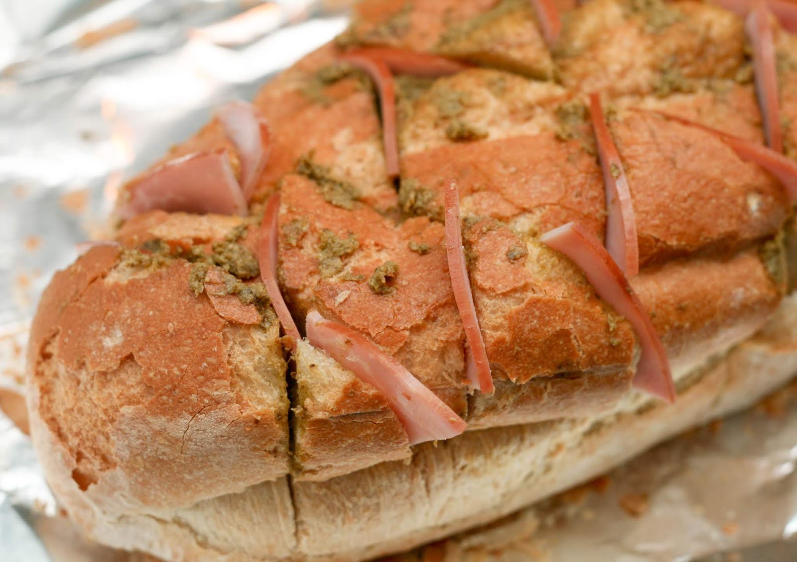 Ham Pesto And Italian Cheese Stuffed Bread Coconut Lime Bread Pudding With Chocolate Chips